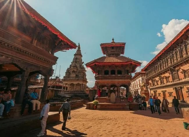 早餐后前往帕坦杜巴廣場,廣場呈長方形,東邊是皇宮,塔萊珠女神廟、金廟、曼嘉噴水池等,西 邊則是造型各異的廟宇,其中最為著名的是黑天神廟、黑天寺、哈里桑卡神廟、毗濕奴神廟、 毗斯瓦納特神廟等。其建筑藝術(shù)也非常高超、精湛,在世界建筑史上占有一席之地,被稱為 "露天的博物館"。游覽始建于 2000 多年前的世界上最輝煌的佛教寺廟“斯旺那布廟”(Swayambhunath 世界文化遺產(chǎn),俗稱“猴山”) 【約 1.5 小時】,來這里祭祀 的有尼佤爾尼姑、藏族喇嘛、佛教及印度教之貴族朝圣者,也許斯旺那布塔是觀察尼泊爾各個宗教融洽相 處的最佳地方。整體建筑古樸,味道十分濃郁,民房的窗飾極其繁復(fù),寺廟建筑的細(xì)部一樣精細(xì)。寺廟、 佛塔、銅飾等組合在一起,再加上成群的鴿子飛來飛去,成群的猴子蹦來蹦去,形成獨特的景觀。游覽始建于 13、14 世紀(jì)的巴德崗杜巴廣場(Bhaktapur Durbar Square 世界文化遺產(chǎn))【約 2 小時】:55 窗宮(The Palace of 55 windows)、 巴特薩拉女神廟(Batsala Devi)、尼亞塔波拉塔(Nyatapola Temple)等。這里可以選購著名的巴德崗木雕工藝品和陶制品。十五世紀(jì)以后,巴德崗杜巴廣場是巴德崗的城市核心,這里有長達(dá)500 年馬拉王朝的王宮,包括許多各具藝術(shù)特色的宮殿、庭院、寺廟、雕像等,被譽為“中世紀(jì)尼泊爾藝術(shù)的精華和寶庫”,素有“露天博物院”之稱,展現(xiàn)出一幅中世紀(jì)尼泊爾的瑰麗圖畫。后前往加都以東 30 公里的美麗的尼瓦爾人村莊納加闊特(海拔:2000 米)。這里以壯美的喜馬拉雅雪山日出、日落而聞名,是著名的喜馬拉雅觀景臺。因為這里是加德 滿都山谷觀賞喜瑪拉雅山脈視角最廣且最佳的地方。在這里觀賞喜瑪拉雅雪山全景,喜馬拉 雅雪山就像一條玉帶橫掛在空中。如果能見度高,還能看到世界第一高峰-珠穆朗瑪峰。這 里正對著喜瑪拉雅山脈的二十多座 6000 米以上、包括珠珠穆朗瑪峰、雅安納普爾納山峰、 岡底斯圣山等世界著名雪峰的連綿山丘。(在此可以看到十座世界最高山峰中的五座)。傍晚在納加闊特度假 村內(nèi)用晚餐,品餐觀景,是有多么的愜意舒適!