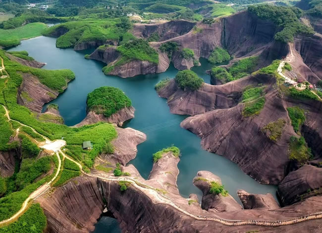 抵達(dá)后,前往郴州抖音最火網(wǎng)紅打卡地【高椅嶺】(游覽時(shí)間約3.5小時(shí))。車(chē)覽【馬皇丘大峽谷】,峽谷原為一條小路穿行而過(guò),現(xiàn)為一條漂亮的馬路,卻造就了另一種景觀,其中絕壁上的酷似女性私處【陰元石】更是丹霞景觀一絕。而后徒步高椅嶺,欣賞絕美之丹霞碧水,【巨蜥臥水】。先是歷經(jīng)【瓜石頸】之天梯險(xiǎn)境,再是近距離感受【羊牯石】景區(qū)之絕美。從高處往下鳥(niǎo)瞰瓜石頸,一條清澈美麗的“天河”蜿蜒穿行在丹霞地貌之間,或?qū)捇蛘?,蔚為大觀,從羊牯石景區(qū)原路返回至瓜石頸,沿另一條石級(jí)自上而下欣賞水中“巨蜥”形神兼?zhèn)渲^美,驚于大自然的造化與鬼斧神工。這一片丹霞碧水,因?yàn)榈は嫉孛仓苓呌衅恋乃蔹c(diǎn)綴,美得一塌糊涂。