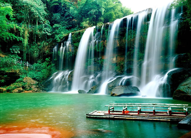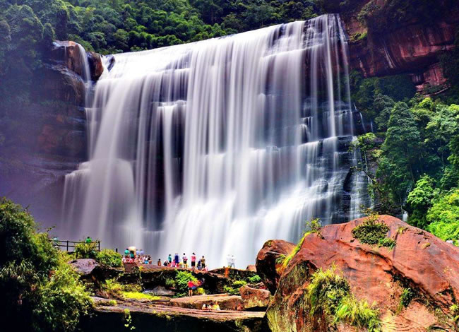 早餐后前往當(dāng)?shù)厣鐣唐妨闶燮髽I(yè)自由活動并領(lǐng)精美紀(jì)念品,名特產(chǎn)品(較為著名云上赤水泰和乳膠、逸可瑞斯乳膠等,主要銷售乳膠制品),自由活動后前往【赤水大瀑布】欣賞美譽(yù)中國的簾狀瀑布典型代表中洞瀑布。觀氣勢恢弘的赤水大瀑布(寬81米,高76米),是亞洲最大的瀑布,也是“世界丹霞第一瀑”,瀑水從懸崖絕壁傾瀉而下,猶如萬馬奔騰,聲如雷鳴,水霧彌漫,陽光下時見彩虹繽紛,在特定的觀景石上,奇妙的佛光環(huán)隨人移動,一人一環(huán),美不勝收。自由活動后乘車前往【白馬溪景區(qū)】(此景點為旅行社贈送景點,若時間緊湊無法前往請各位旅客諒解,贈送景點不予置換或退費(fèi)),(白馬溪景區(qū)內(nèi)有玻璃橋、旱滑道等娛樂項目,客人可根據(jù)自身情況自愿選擇自己喜歡的項目參加,報價不含娛樂項目)赤水白馬溪景區(qū)是赤水唯一家主題景區(qū),景區(qū)集有赤水旅游的5大旅游元素;瀑布景觀、丹霞景觀、竹林景觀、石斛觀光、以及活化石桫欏樹。景區(qū)原生植被繁茂,景色怡人,環(huán)境絕佳。是旅游觀光的絕佳勝地,晚餐可自費(fèi)品嘗(苗家風(fēng)情晚會120元/人),同時觀賞苗家印象激情互動篝火晚會,或自由活動。酒店休息。