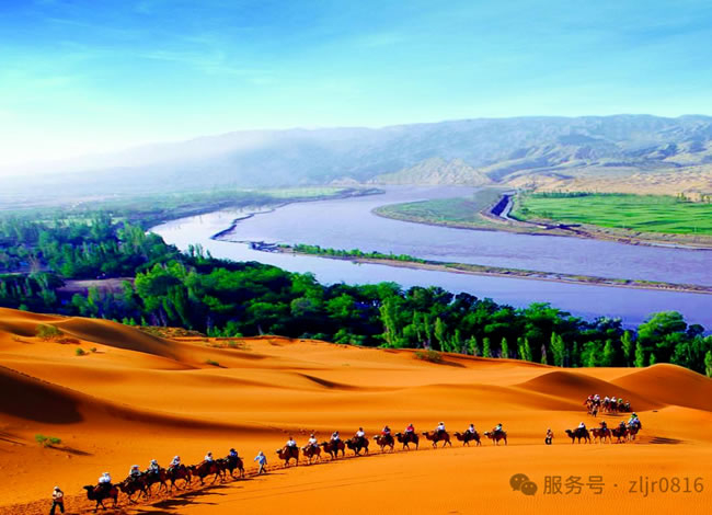 前往中國十大最好玩的地方之一的【沙坡頭】(游覽約2.5小時左右)這里集大漠、黃河、高山、綠洲為一體,地貌奇特,沙河相依,這里大漠黃河天工巧成,極具江南景色之秀美,又兼西北風(fēng)光之雄奇,被旅游界專家稱為“世界壟斷性旅游資源”。